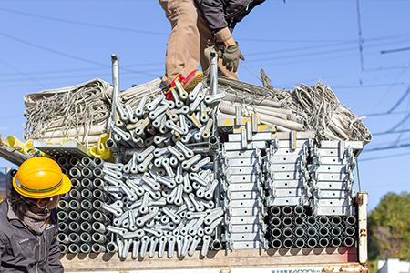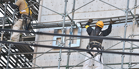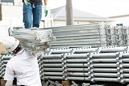 足場工事とは、建築現場など高所で作業をする際に、足元を支える足場の工事のこと。